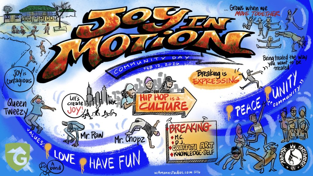 On February 12, 2026, Tweezy, Raw and Chopz visited Graland Country Day School to help celebrate their “Joy in Motion” themed Community Day. The day started with an all school assembly led by the students. School of Breaking shared a presentation about Hip-Hop culture. We talked about how we use the creative elements of Hip-Hop to bring us joy and help us to express ourselves in a way that brings us all together in Unity. We told the auditorium of staff, students, caregivers and community members about the importance of Hip-Hop’s values and how we use them everyday.